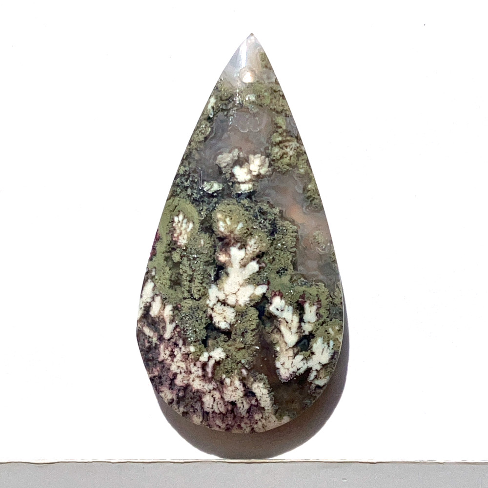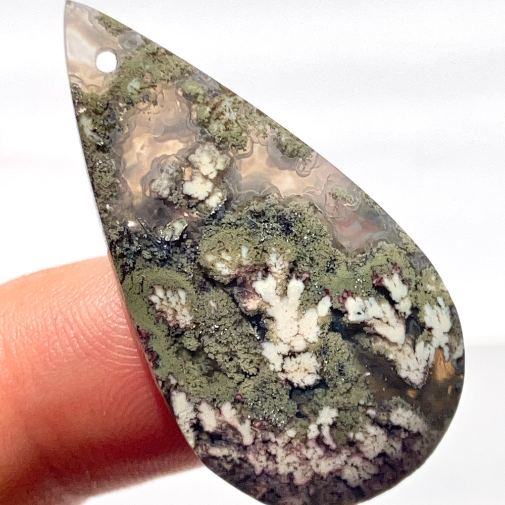 上部に1mmほどの穴が開いているしずく形のモスアゲート。