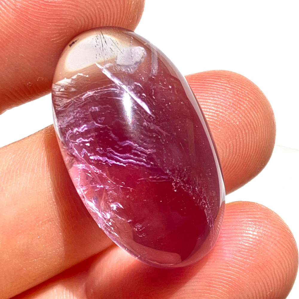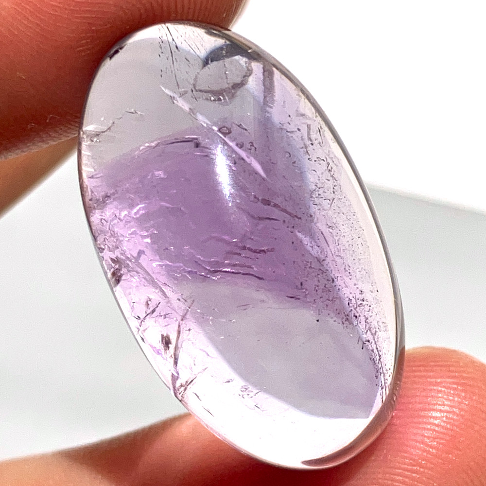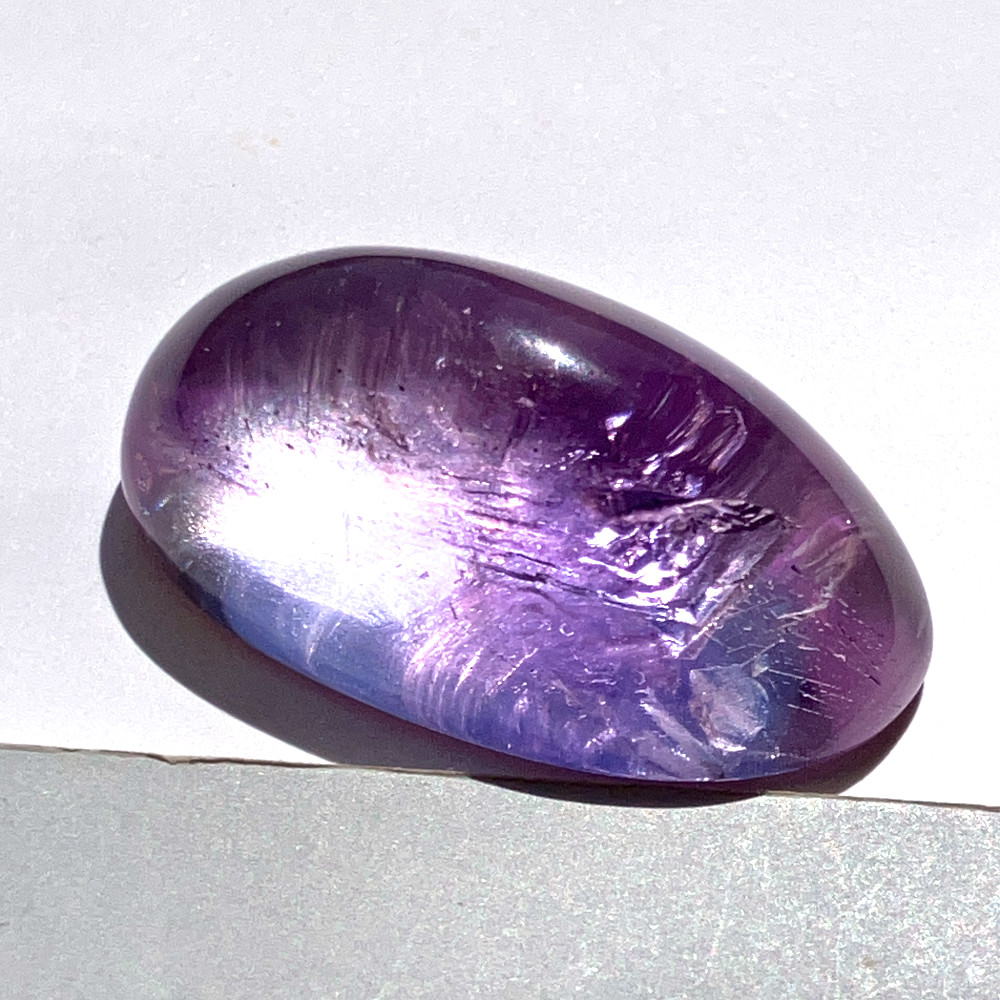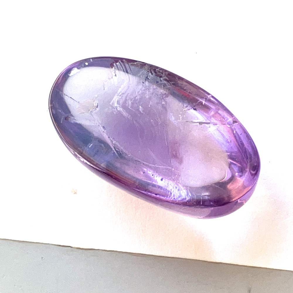 透明感の中に淡い紫が広がる、大ぶりのオーバルカボションです。