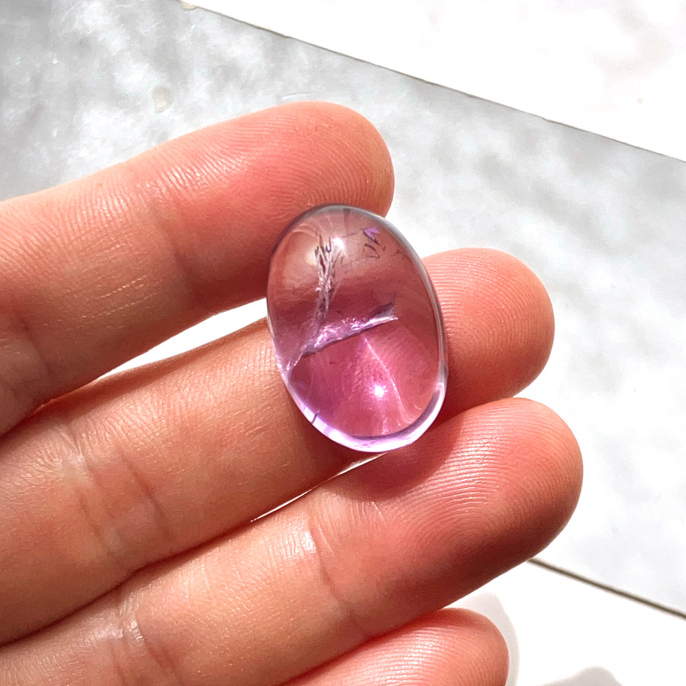 ほんのり淡い紫の中に、透明感と奥行きを感じさせるカボション。