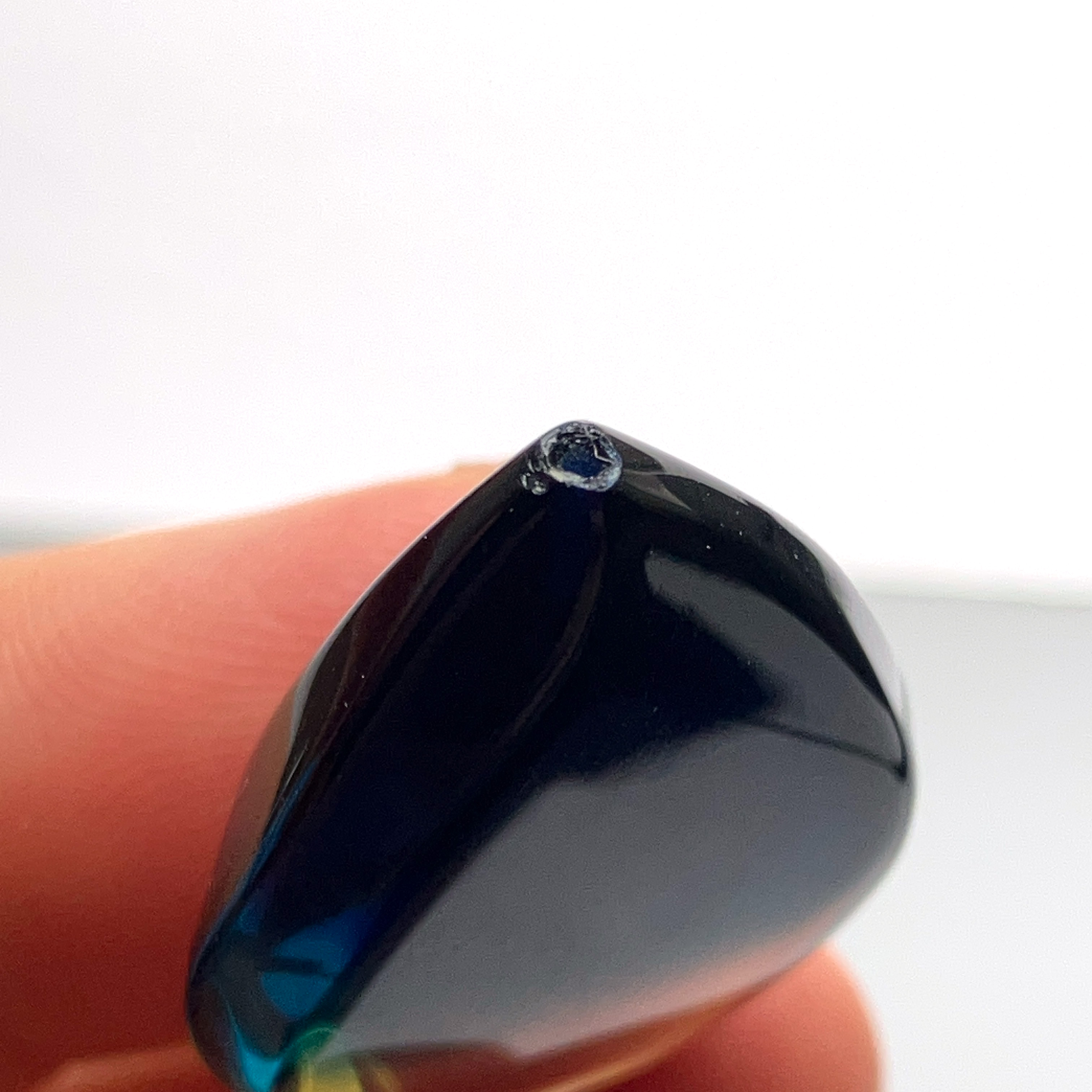 頂点側に片穴(貫通しない穴)あり。ヒートンやワイヤーを差してペンダントにしても、穴を使わずに石包み(ワイヤーラップ)で仕立てても◎。