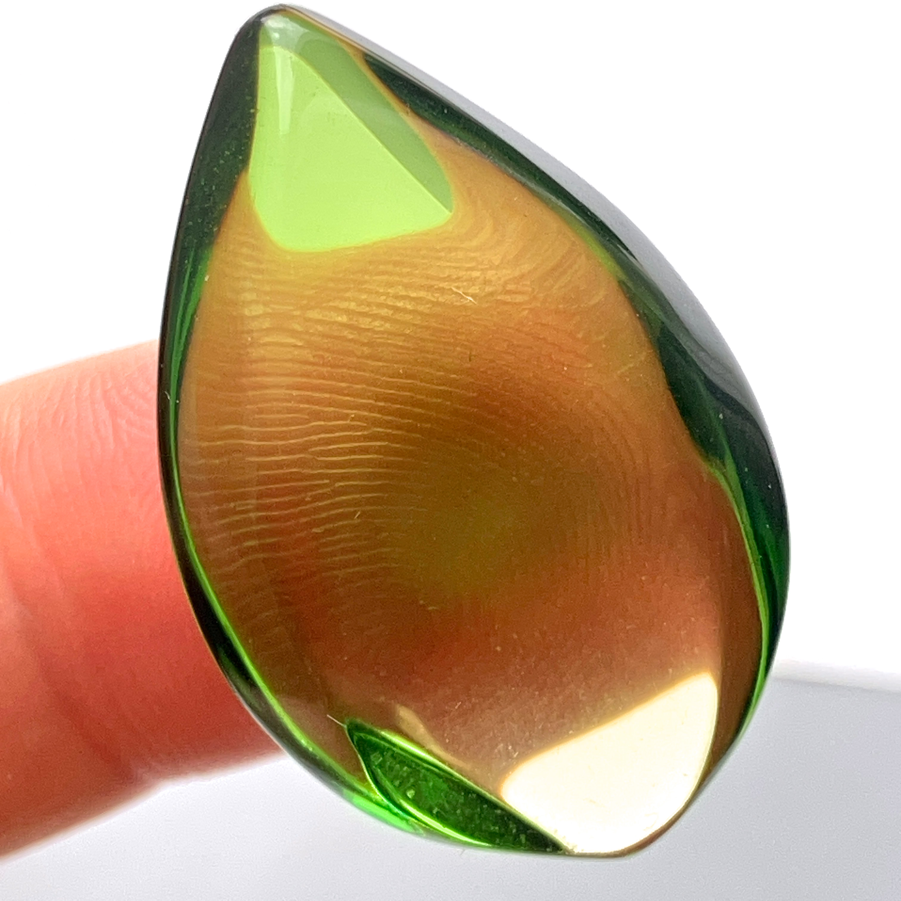 レモン色から瑞々しいグリーンへととけ込むグラデーションが大変美しいルースです(無穴)。