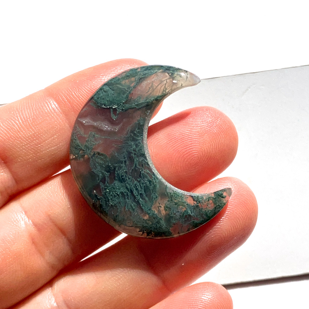 穴あきモスアゲート月形[m28] 34x16mm 27Cts