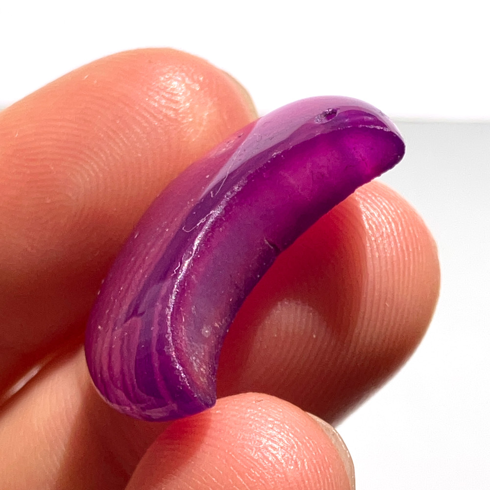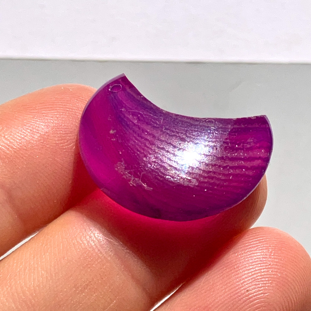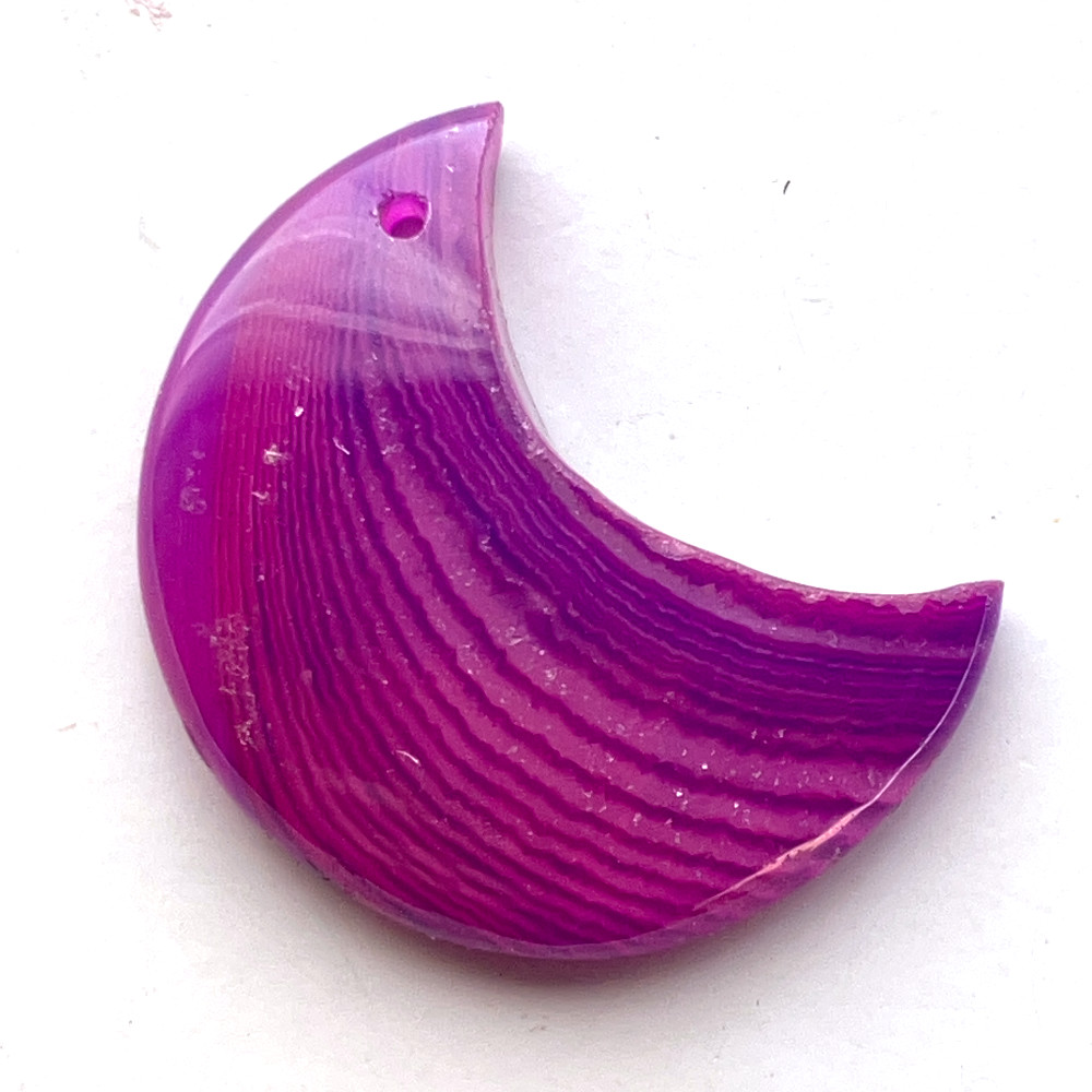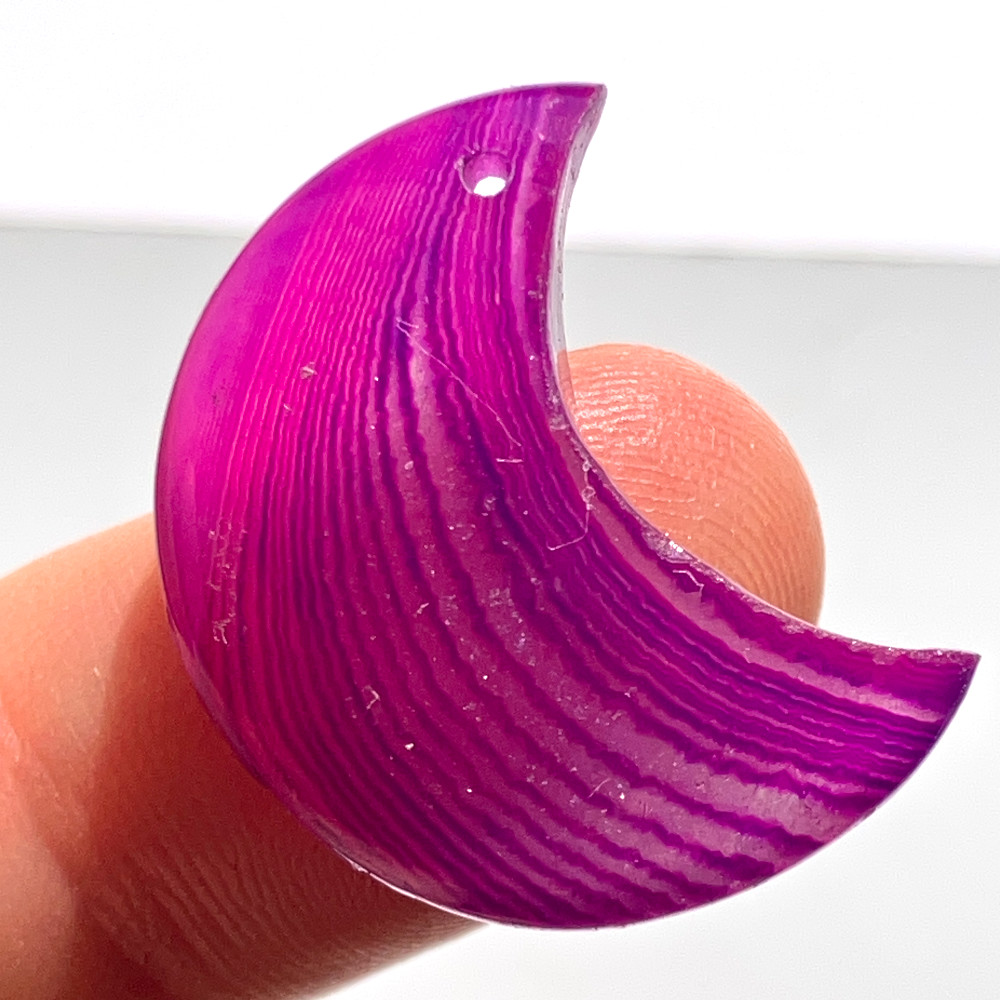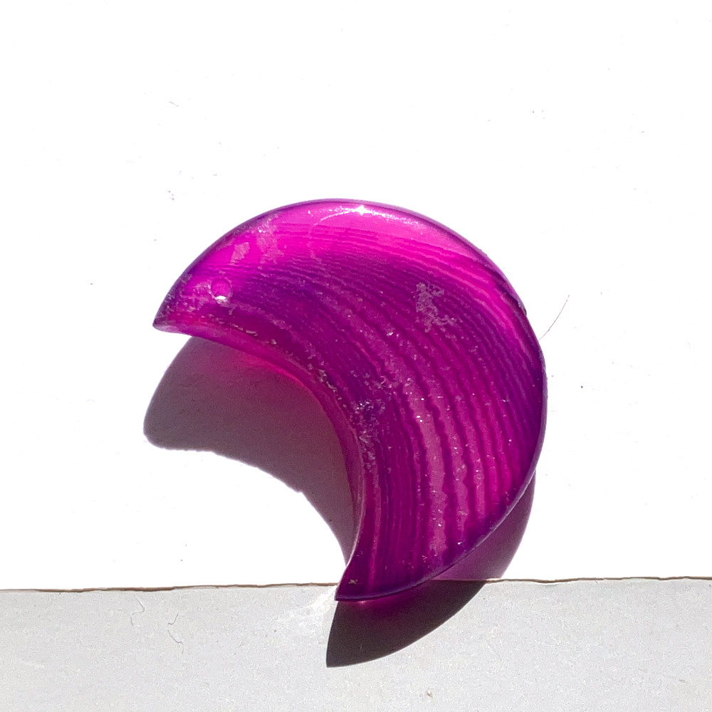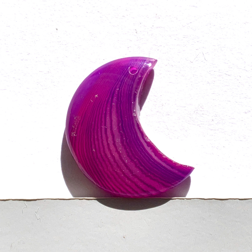 鮮やかなパープルカラーが目を引く、月形にカットされた染めオニキスアゲートです。