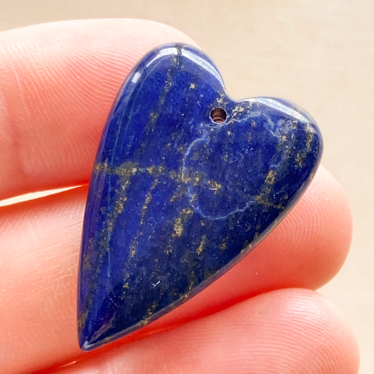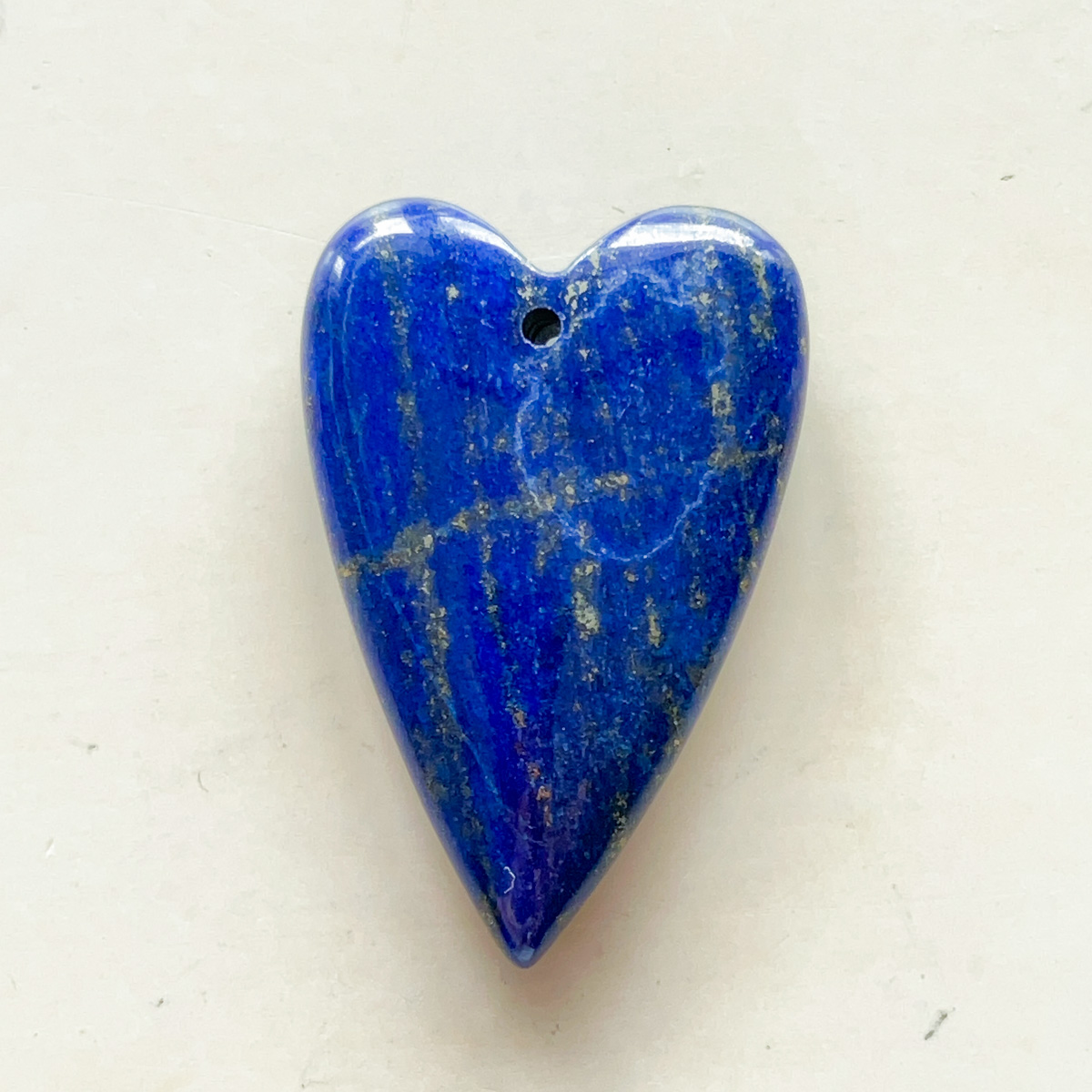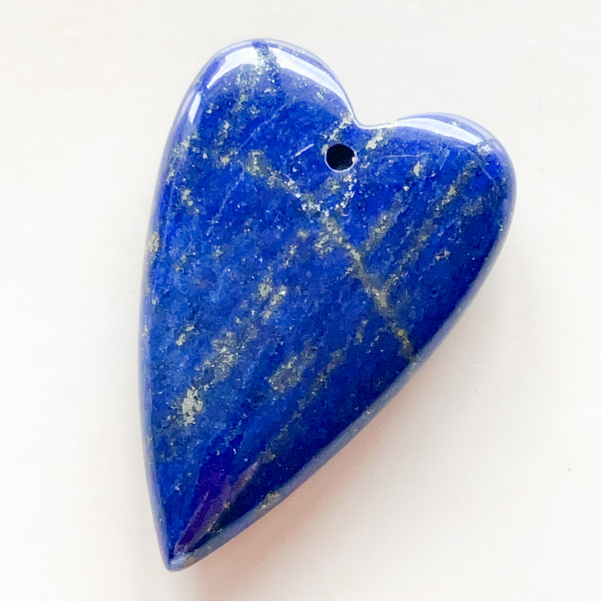 深みのある青の中に、パイライトが筋のように流れるように現れた、印象的な表情のラピスラズリです。