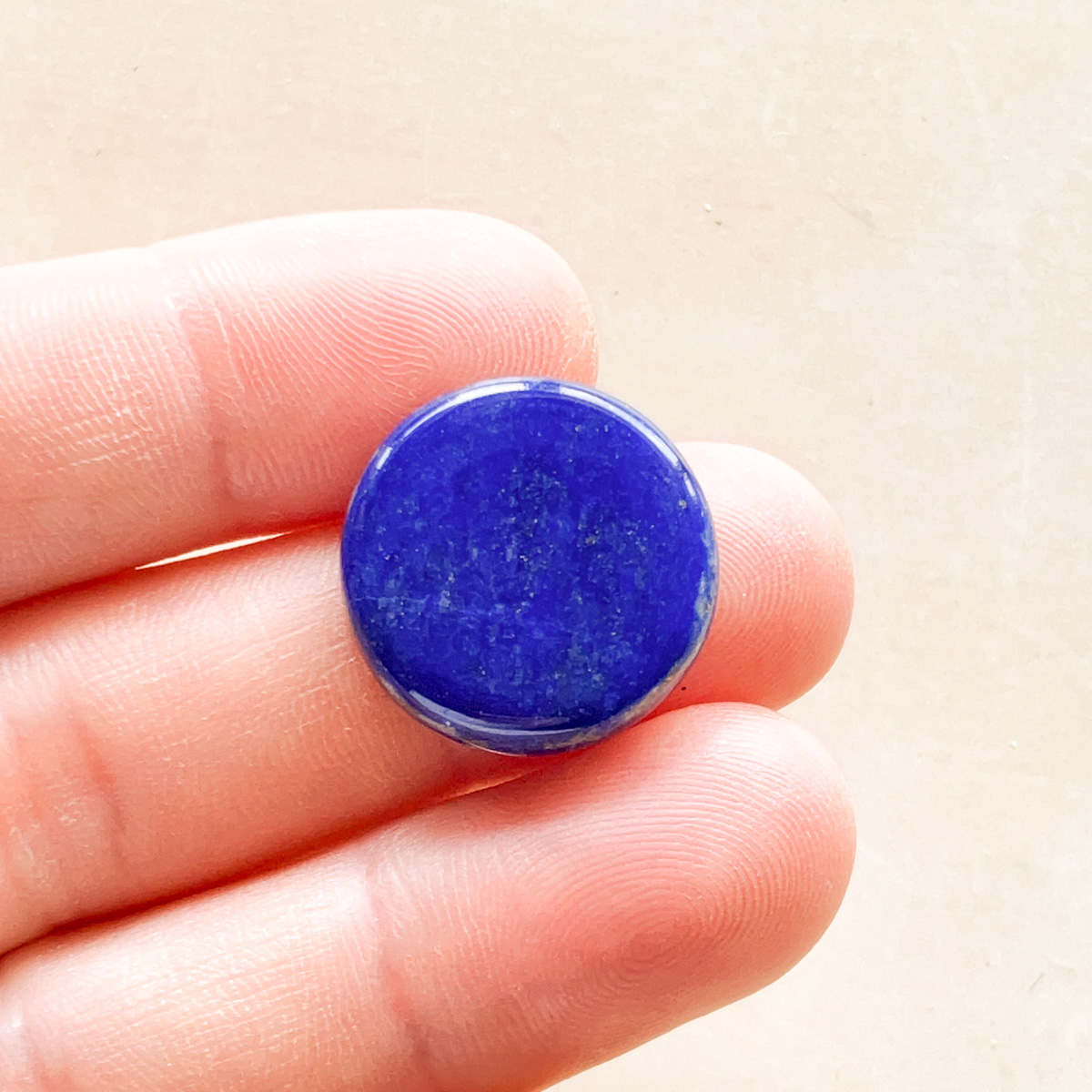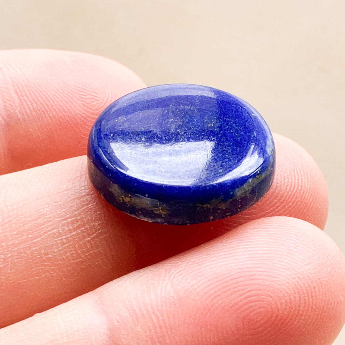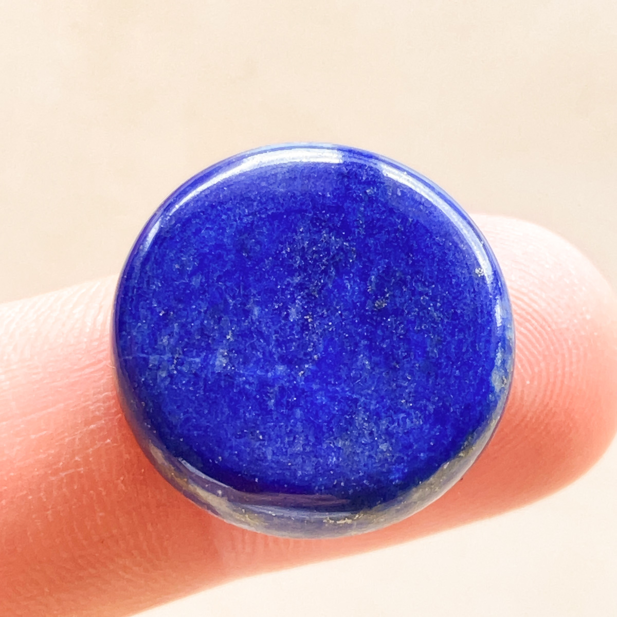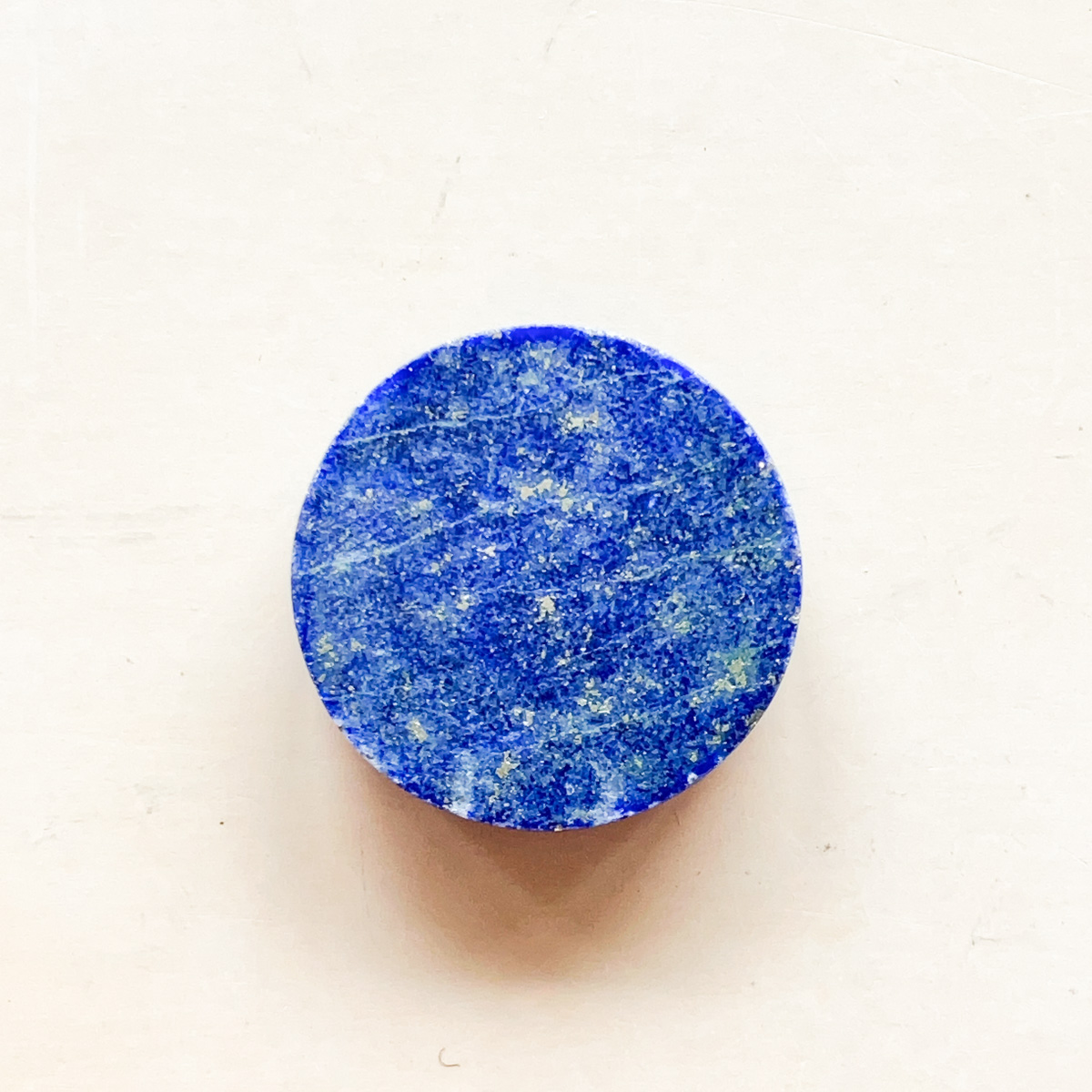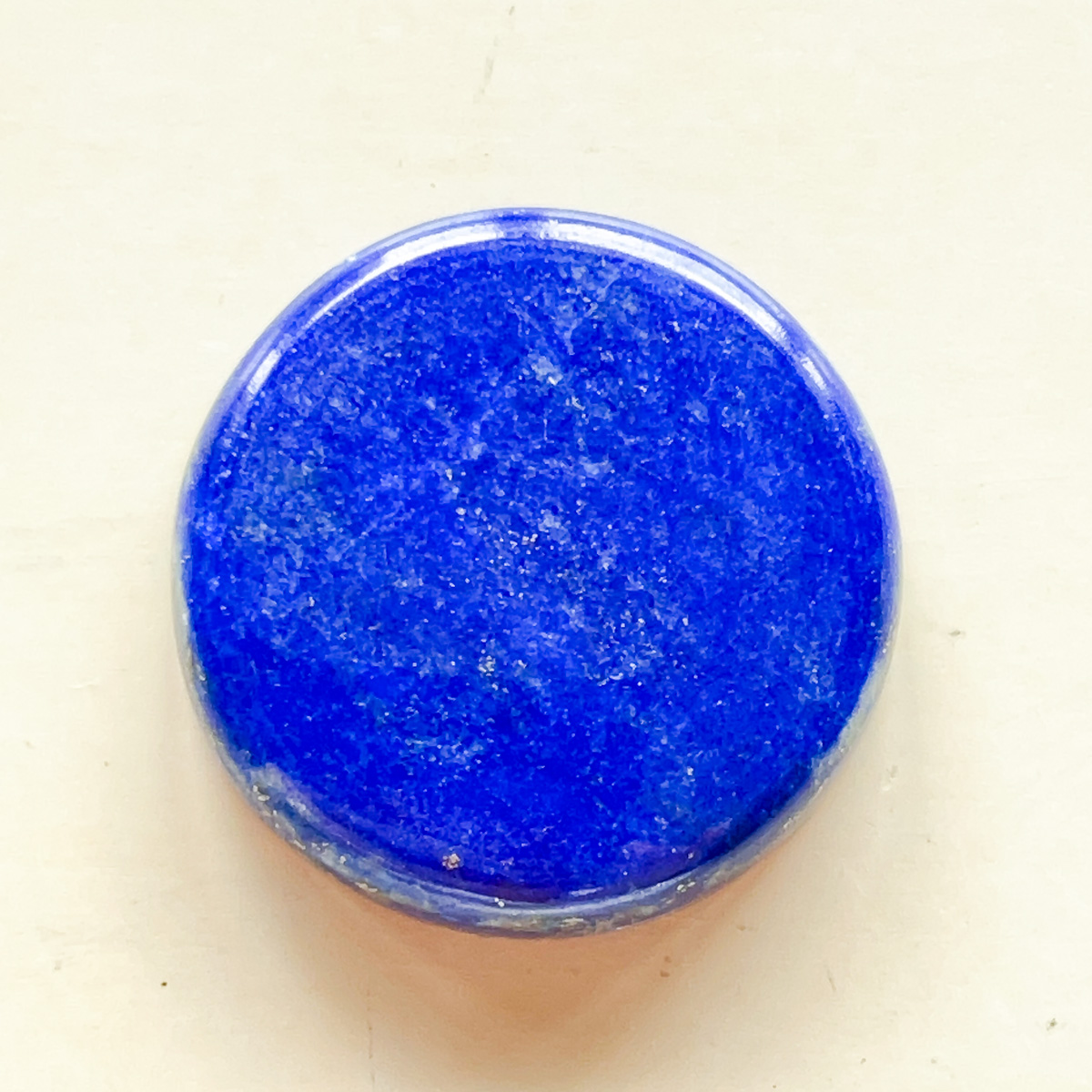 思わず見入ってしまうような、深く落ち着いた青が美しいラピスラズリの円形ルースです。