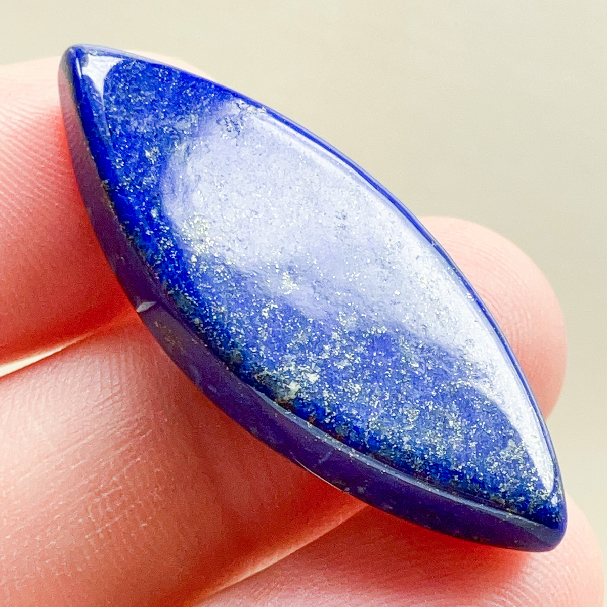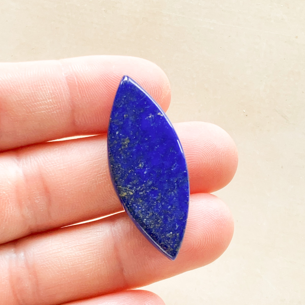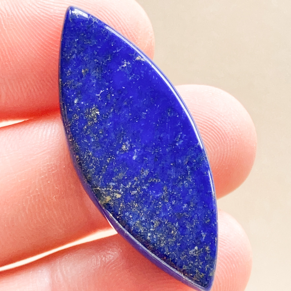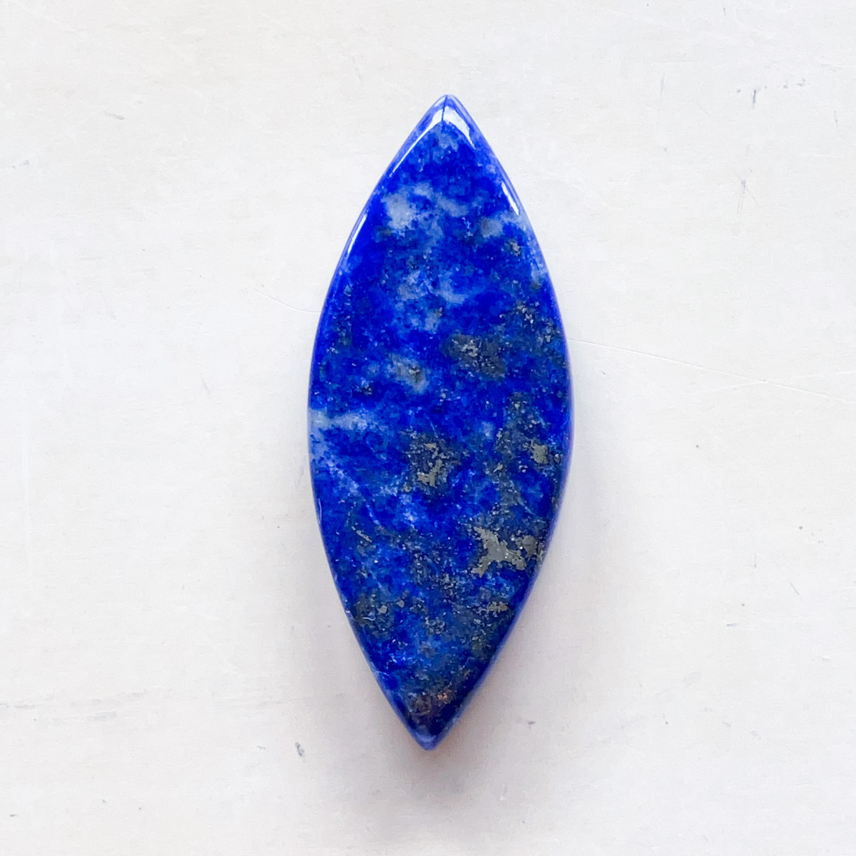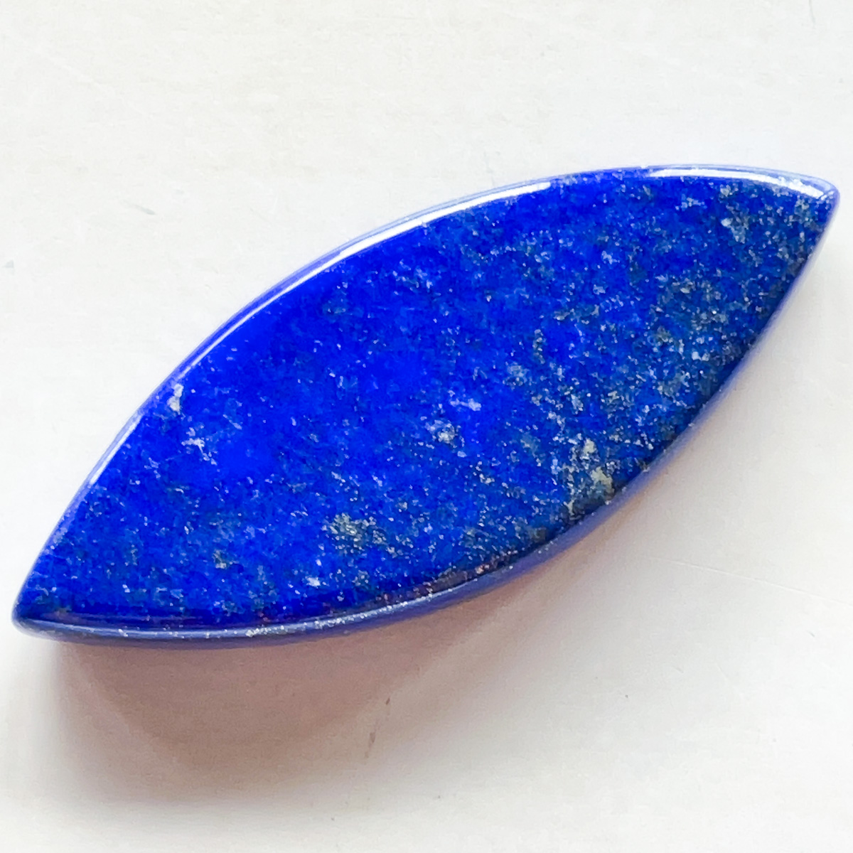 深く濃い青が美しい、ラピスラズリのマーキス形ルースです。