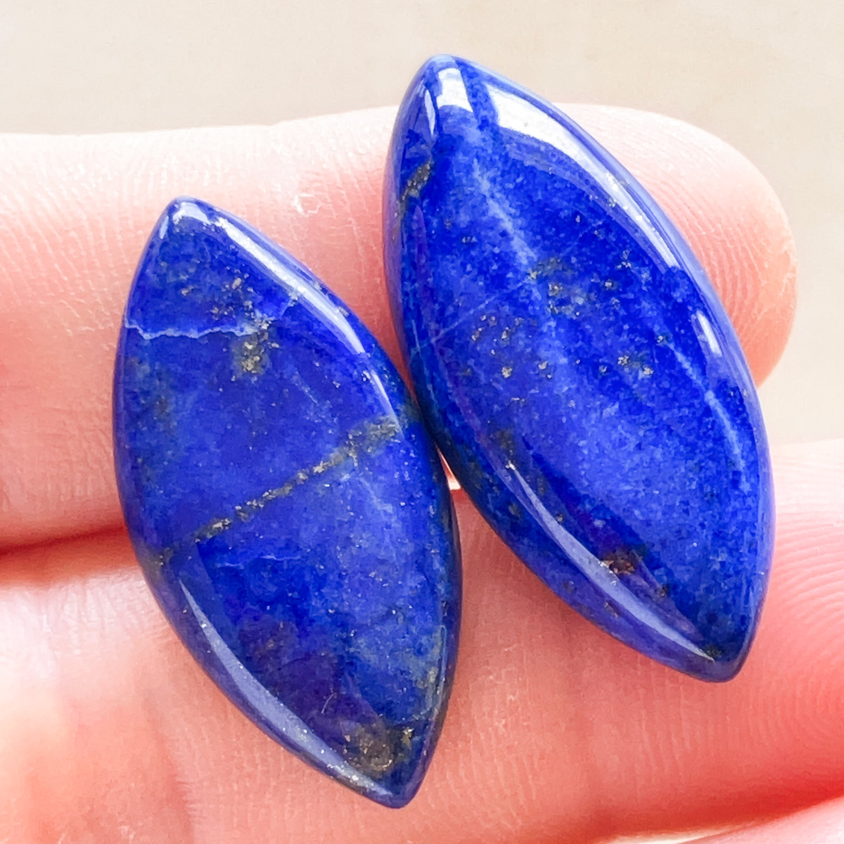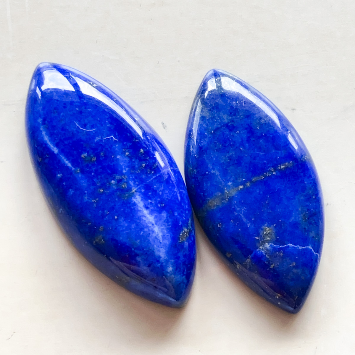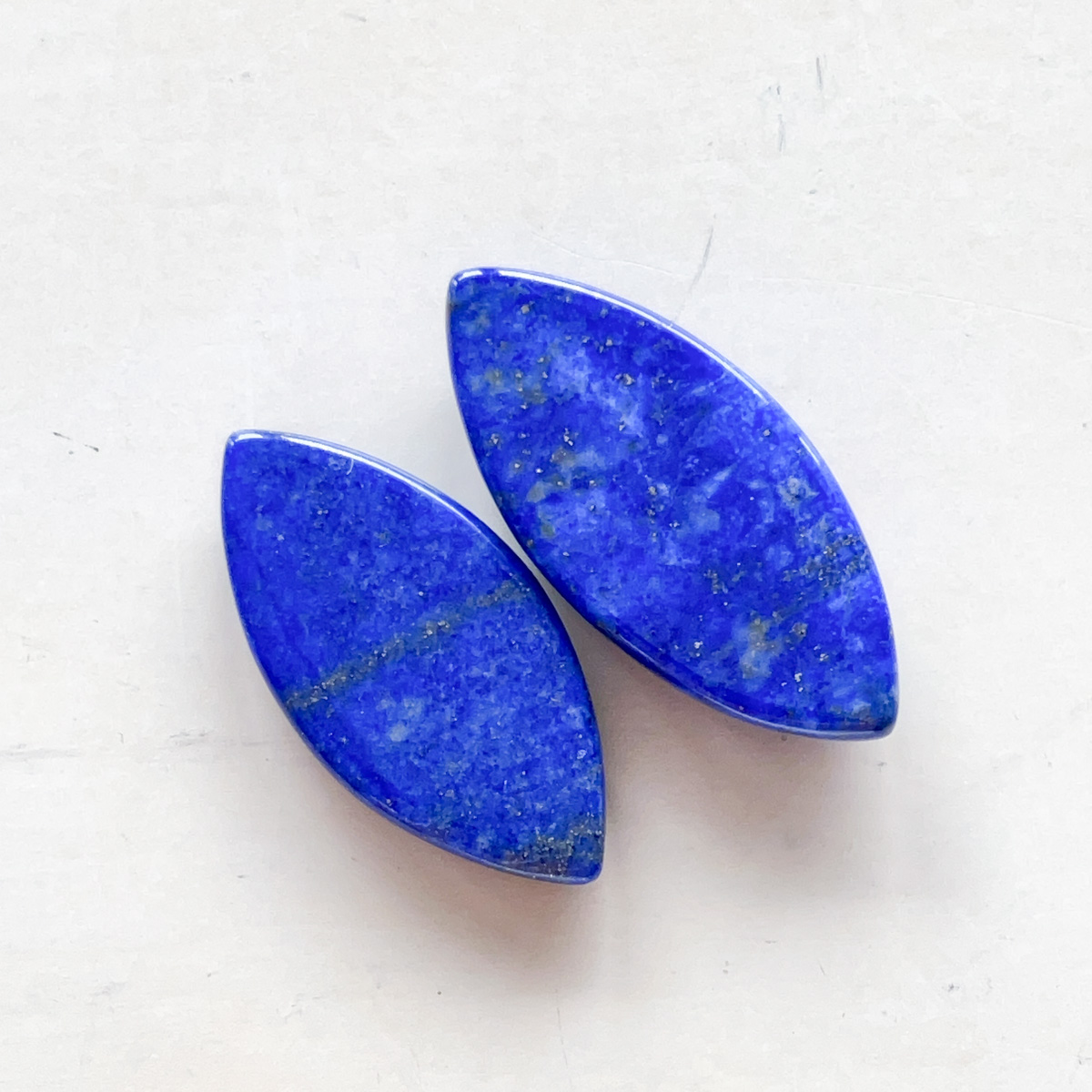 すっきりとしたマーキスシルエットが印象的な、ラピスラズリのペアルースです。