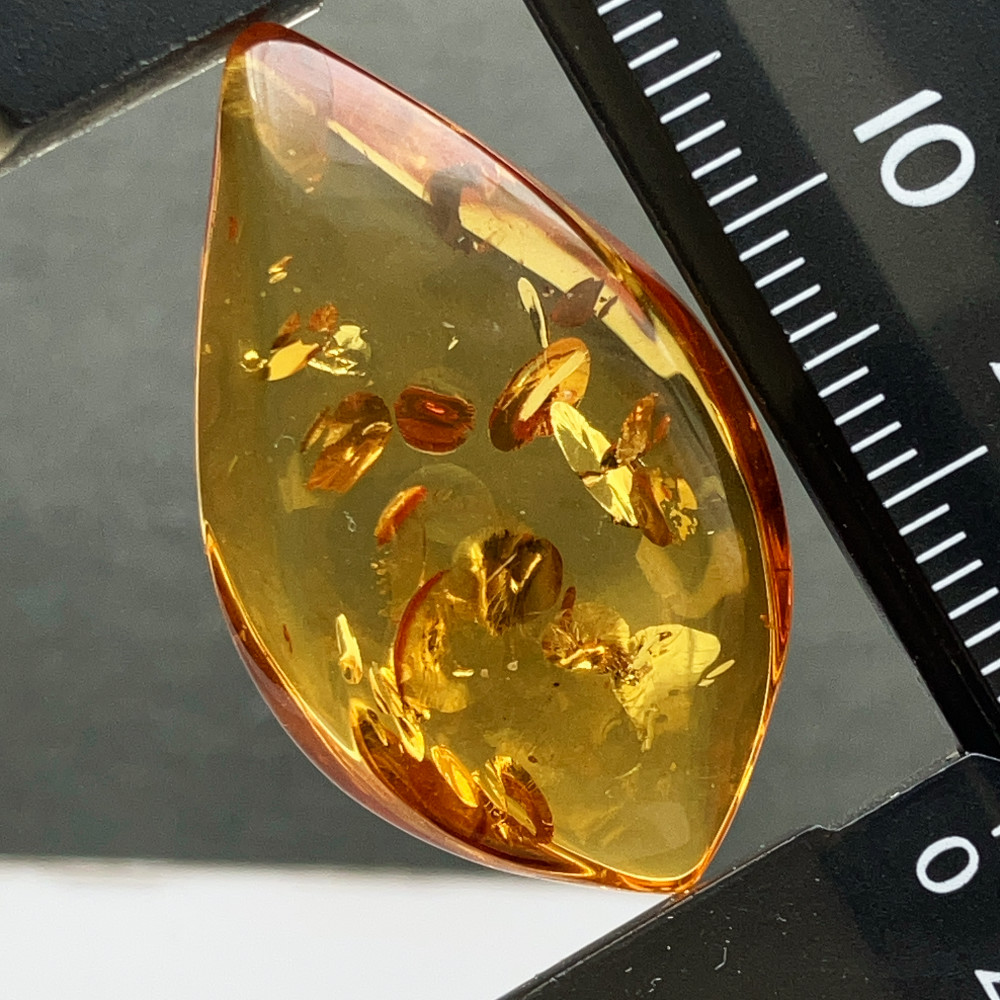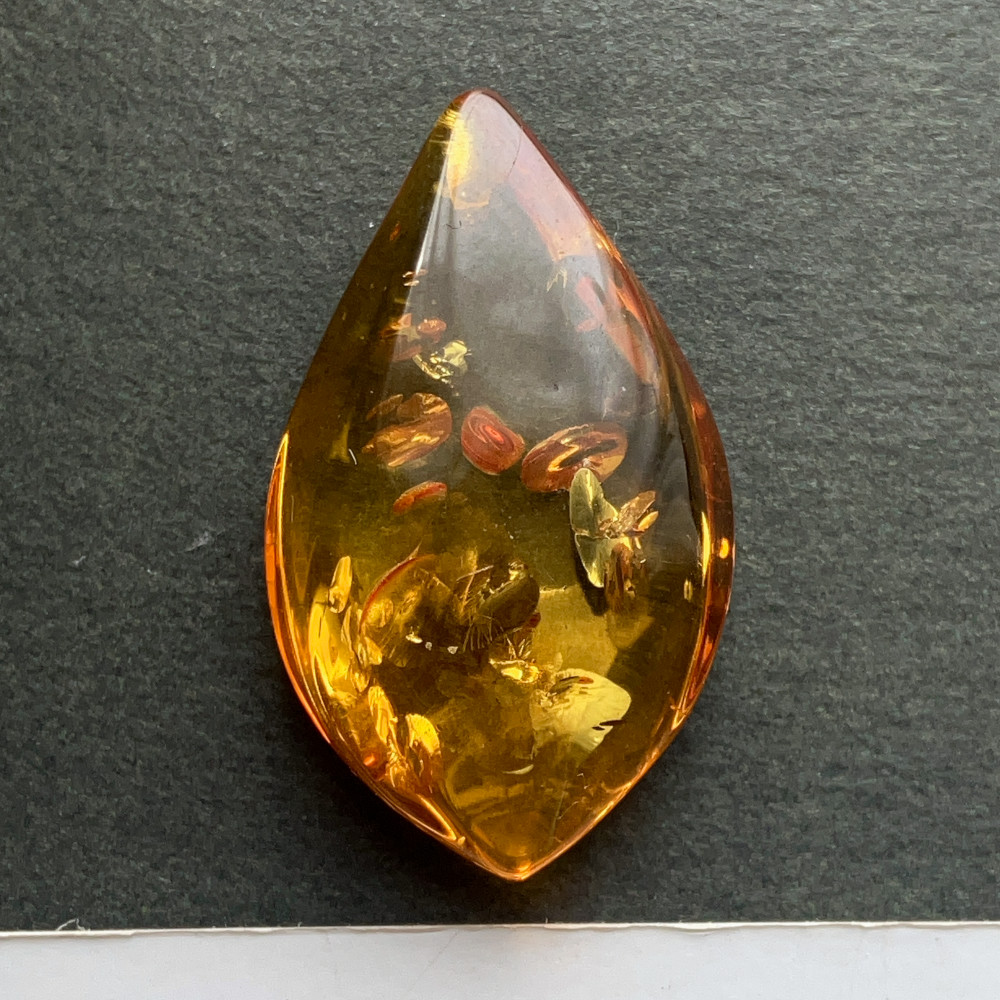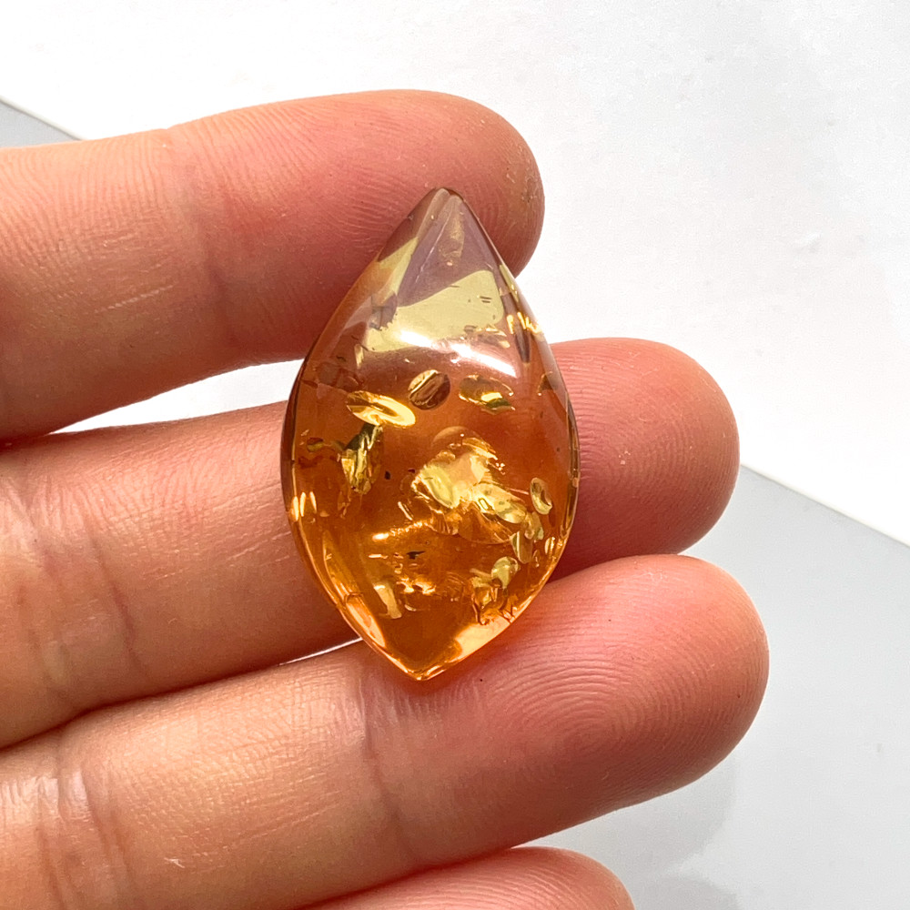 きらりと光る内包物が美しい、バルティックアンバーのリーフ型(炎型)ルース です。