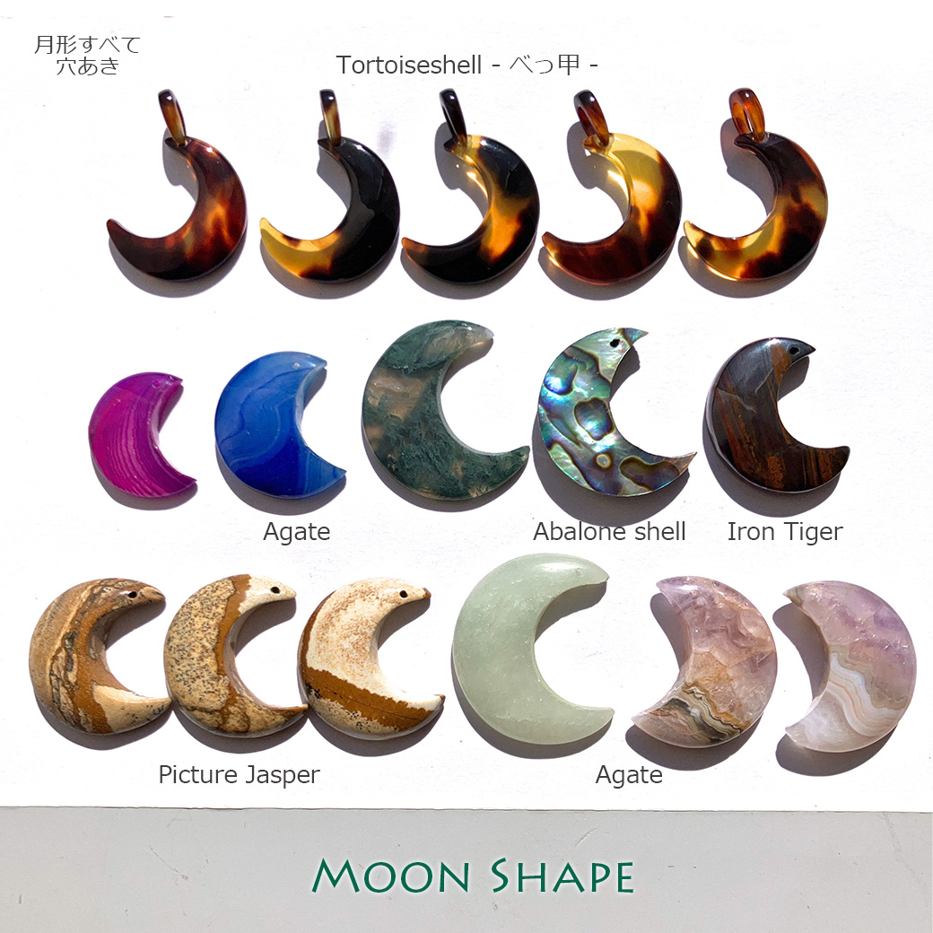 なだらかな三日月フォルムは、ワイヤーラップやマクラメ編み、金具留めなど幅広い仕立てに対応します。